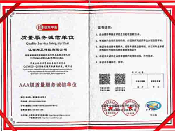 3A级质量服务诚信单位
