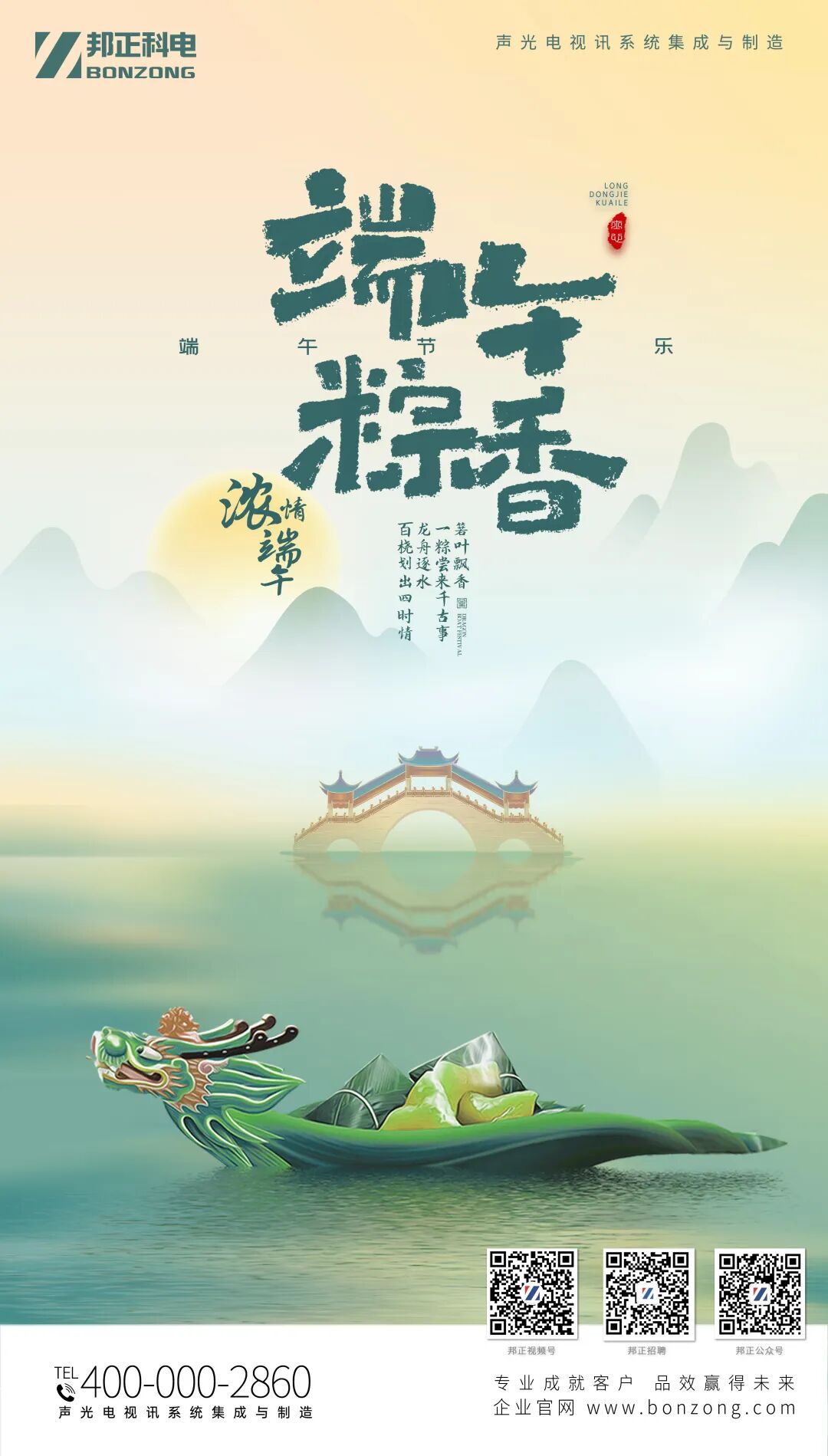 农历五月初五当粽子清香、艾草幽香、米酒醇香在街头巷尾弥散开来一个庄重的节日也朝我们走来一年一端午,一岁一安康端午是屈原对国至爱的不朽端午是百舸争流的激情豪迈端午是香甜中化不掉的思念端午是向往健康祥和的祝福穿越上千年的时空承载着历史的厚重隽刻着中国人独有的浪漫与情怀凝结我们对家与国最独特的寄托BONZONG邦正科电愿大家都能品尝时光的香甜在仲夏的日子里平和安康!